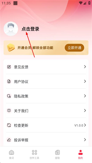1、在零违查词首页,点击底部我的选项,进入个人中心页面。