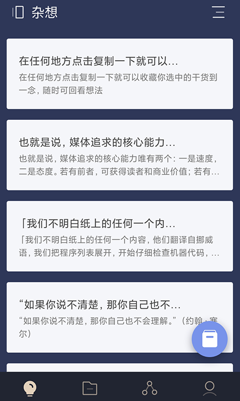 一款跨应用灵感收集工具,以在其他App如浏览公众号文章、网易云热评,豆瓣影评,UC新闻……等场景下快速保存你的灵感。