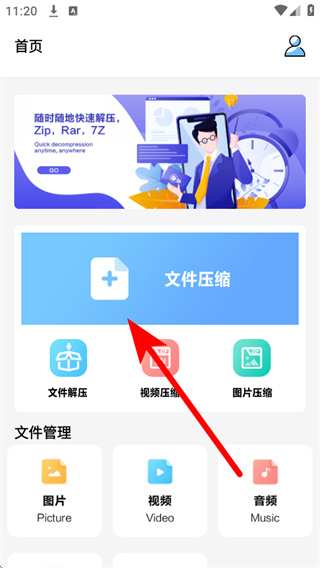 2、在首页点击文件压缩功能选项,进入文件选择页面。