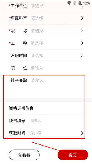4、填写社会兼职、资格证书信息,确认信息后点击提交按钮,完成实名认证申请。
