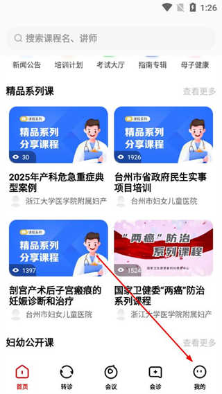 1、打开浙江云上妇幼app首页,点击底部我的选项,进入个人中心页面。