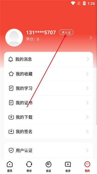 2、在个人中心页面点击账号区域旁的未认证标识,进入实名认证页面。