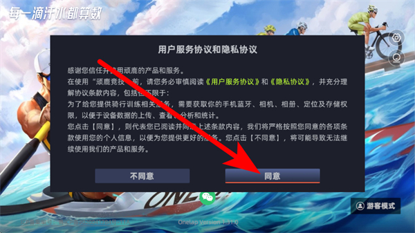 1、打开顽鹿竞技,在弹窗中点击同意,进入主界面。