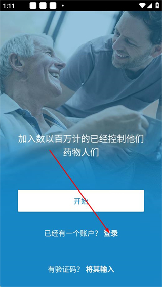1、打开medisafe用药助手app,在初始页面点击登录,进入登录页面。