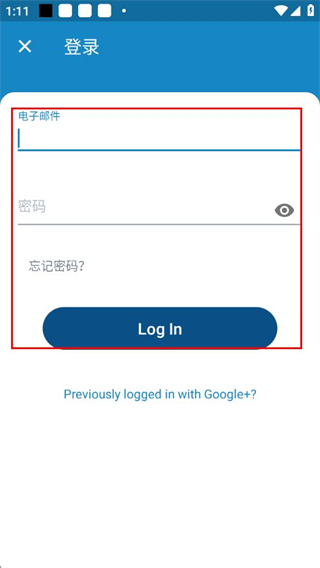 2、在登录页面填写注册时的电子邮箱和密码,点击Log In提交信息。