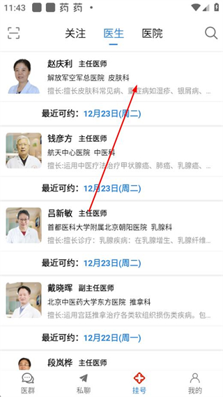 就医号app不仅可以查询号源信息,出诊的医生,还可以显示医生姓名和专长,指定医生挂号如此简单从此,挂号不再云里雾里!