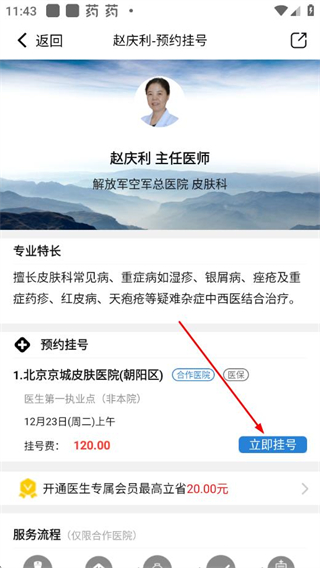 2、在医生列表中选择目标医生,进入该医生的预约挂号页面。