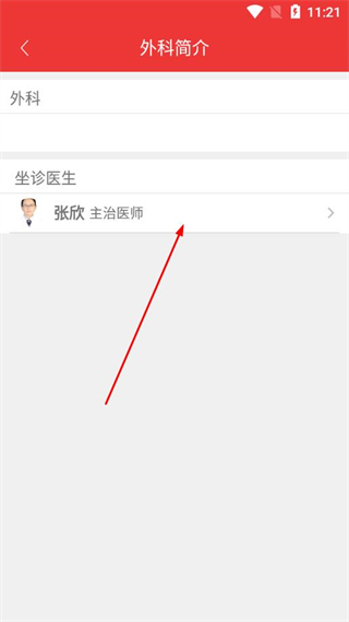 4、在科室简介页面点击坐诊医生,进入医生详情页面。