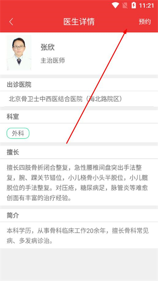 5、在医生详情页面点击右上角预约,进入预约时间选择页面。