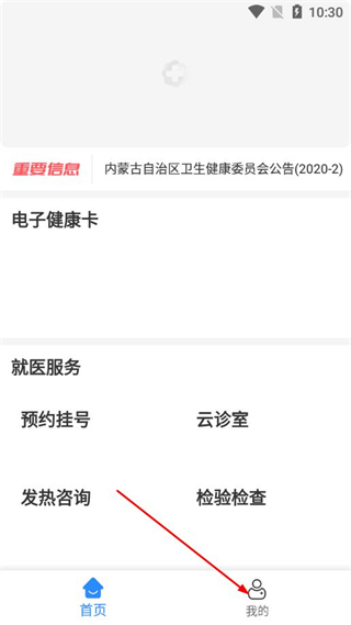 1、打开健康包头app首页,点击底部我的,进入个人中心页面。