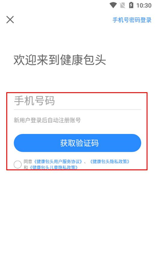 3、填写手机号码,勾选协议,输入收到的验证码完成登录。