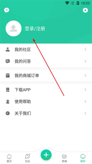 2、在个人中心页面点击登录/注册,进入登录页面。