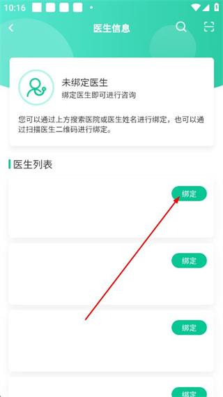 2、在医生信息页面的医生列表中,选择要绑定的医生并点击对应的绑定。