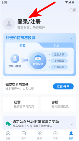 1、在且慢首页点击右下角我的选项,进入个人中心界面。