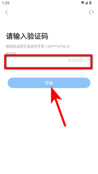 4、输入收到的验证码后点击登录按钮,即可完成注册登录操作。