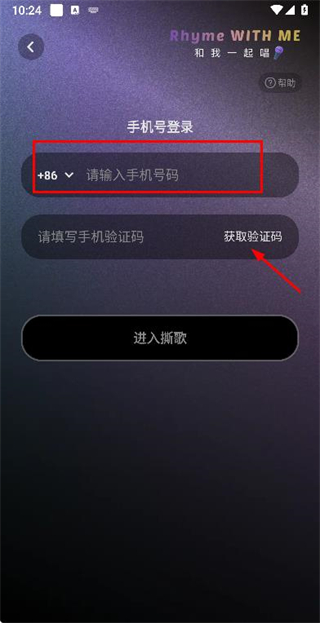 3、在验证码输入框中填写收到的验证码,点击进入撕歌完成账号的登录操作。