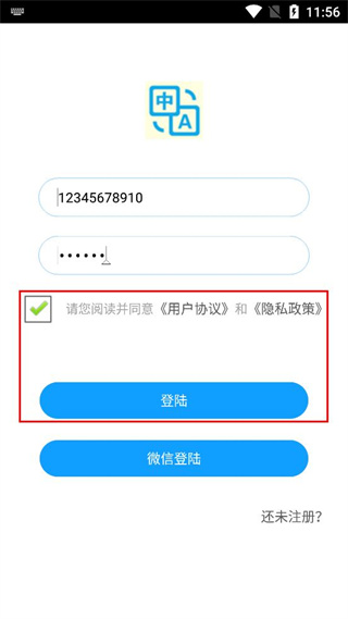4、勾选请您阅读并同意用户协议和隐私政策选项,点击登陆按钮,完成应用的登录操作。