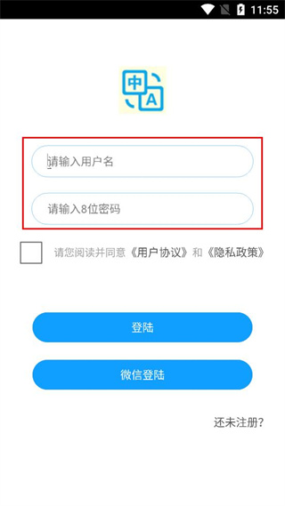 3、在登录界面的请输入用户名输入框填写对应内容,再填写8位密码到请输入8位密码输入框。
