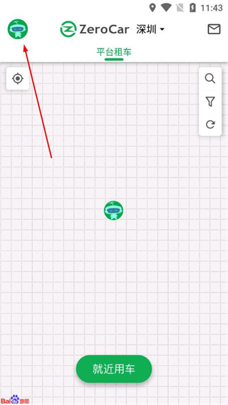 1、打开ZeroCar应用,进入平台租车页面后,点击页面左上角的头像图标,进入登录界面。