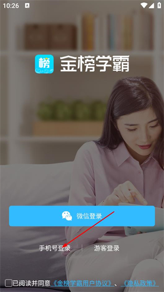 1、在金榜学霸登录选择页面,点击手机号码登录选项,进入手机号登录页面。