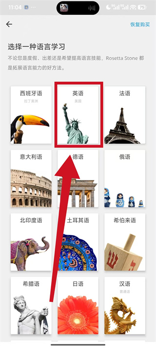 1、打开罗塞塔石碑,选择想要学习的目标语言,点击进入创建账户流程。
