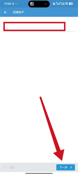 2、在创建帐户页面,填写账户相关信息后,点击下一步按钮。
