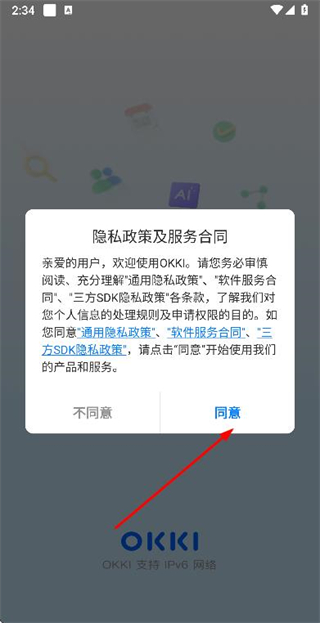 1、在使用协议隐私政策弹窗中点击同意按钮,进入登录页面。