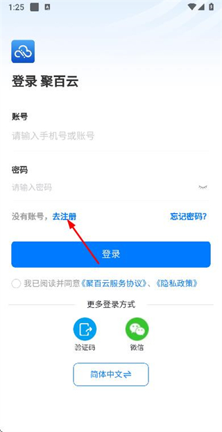 1、在登录页面点击去注册选项,进入注册账号页面。