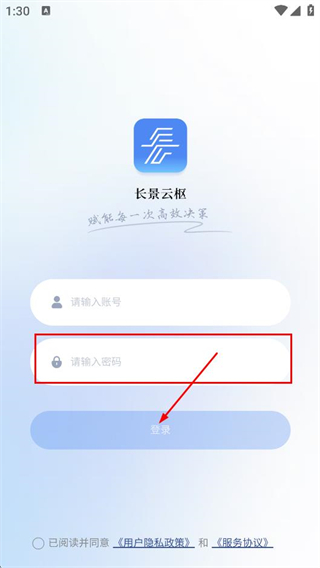 3、在登录页面,填写密码,点击登录,完成长景云枢的账号登录。