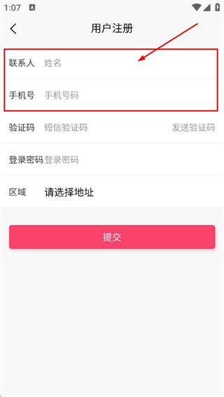 3、在用户注册页面,填写联系人对应的姓名信息,以及手机号对应的手机号码。
