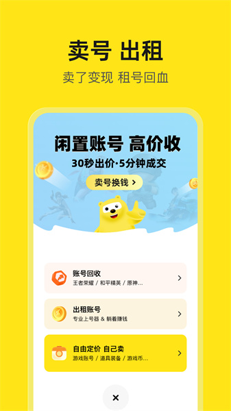 2、提供账号价值评估、账号回收、账号代售、账号担保等服务,是个不错的游戏租号平台