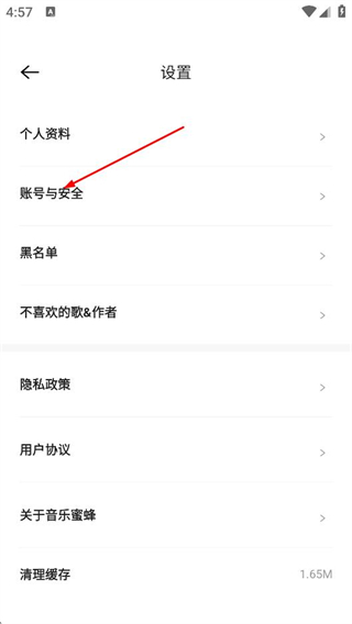 3、在设置页面,点击账号与安全选项,进入账号与安全的操作页面。