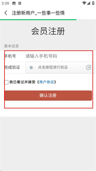 3、在会员注册页面,填写信息并勾选协议后点击确认注册按钮,完成账号注册。