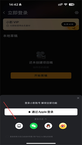3、在下方弹出的登录方式中,选择并点击手机图标的按钮。