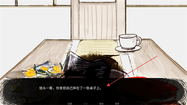 1、进入场景后,查看初始剧情提示发现自己在桌子上,推进剧情流程。