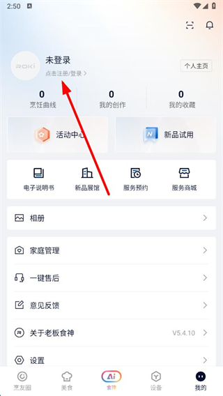 1、打开roki智能烹饪app,点击右下角我的选项,进入个人页面。
