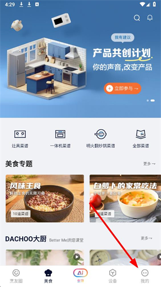 4.告诉你今天适合吃什么(我们会根据您的口味、烹饪习惯并结合应季食材推送给您适合的菜,还会打通智能健康设备给出最适合的营养搭配和最健康饮食方案)
