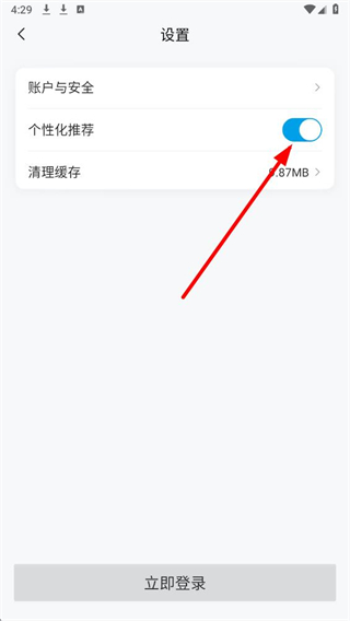 3、在设置界面,点击个性化推荐对应的开关按钮,即可关闭个性化推荐功能。