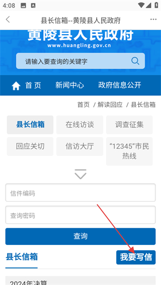 3、在县长信箱页面,点击我要写信按钮,即可写信。