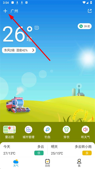 1、在天气预报通应用首页,找到左上角的添加按钮并点击,进入城市管理相关的操作页面。
