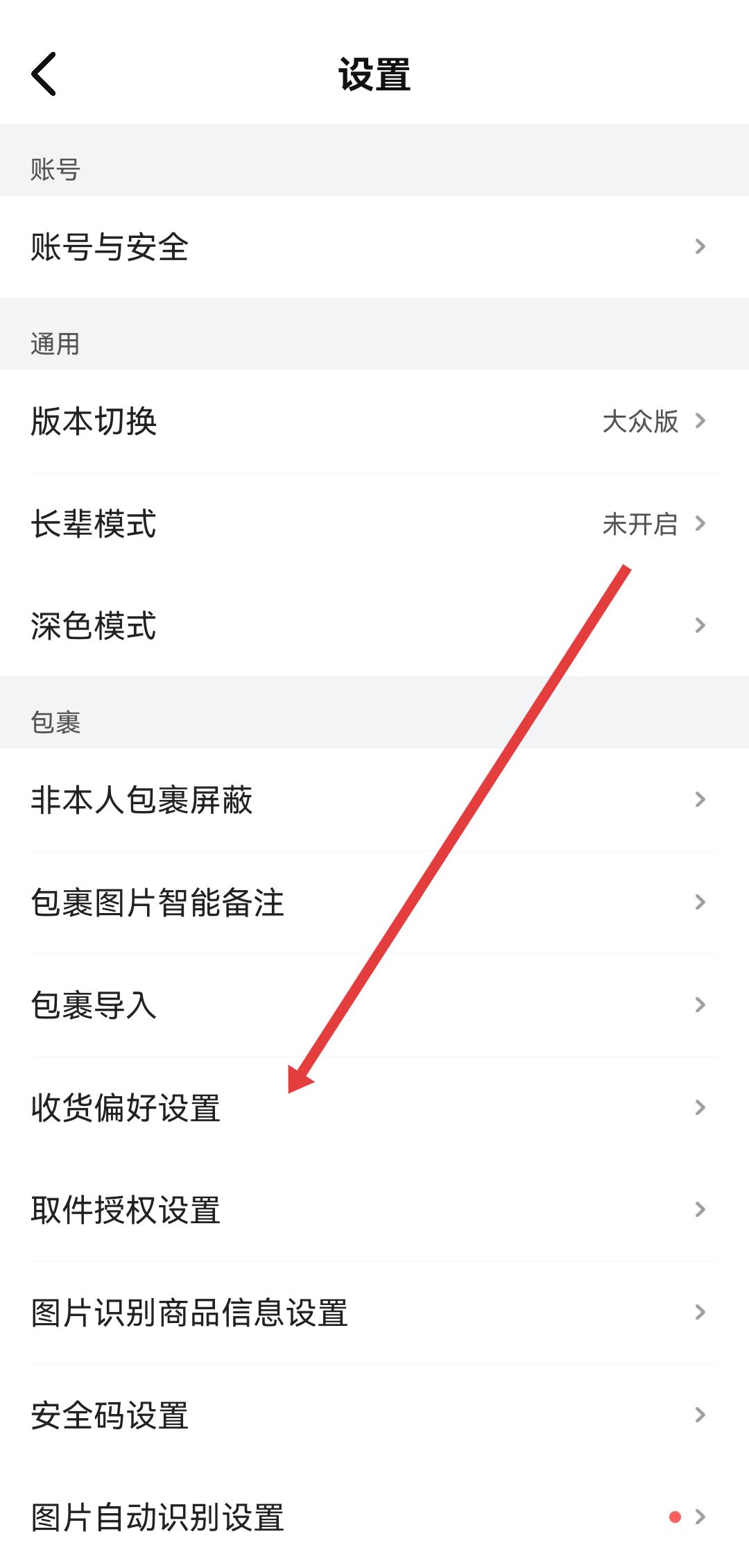 菜鸟怎么设置收货偏好模式