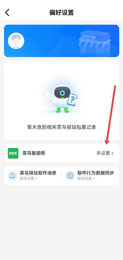 2、找到并且点击收货偏好设置的选项后,我们需要再次点击下方的菜鸟智能柜旁边显示的未设置按钮。