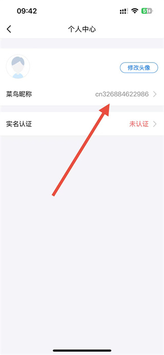 3、在个人中心页面点击菜鸟昵称选项,进入昵称编辑页面。