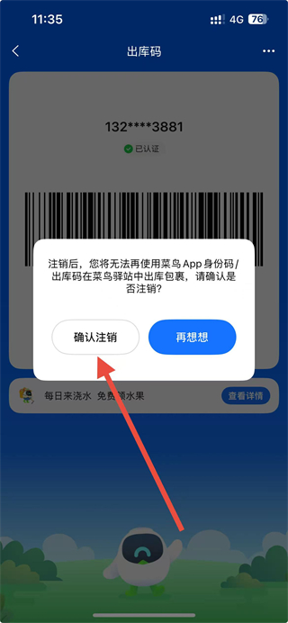 4、在弹出的确认框中,点击确认注销按钮即可完成出库码关闭操作。