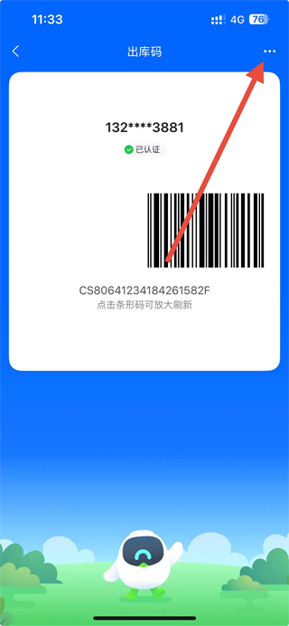 2、在出库码页面,点击右上角三点图标展开菜单。