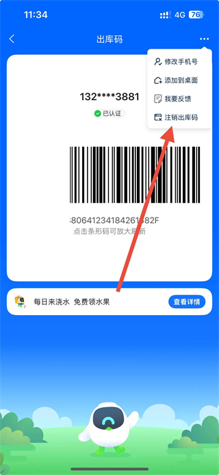 3、在菜单选项列表中,点击注销出库码选项。