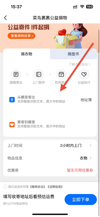 菜鸟怎么捐衣服