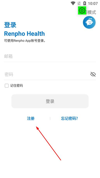 1、打开Renpho的登录页面,点击注册,进入用户许可页面。