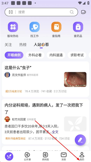 消息:方便及时查看丁香园站内短信、网站通知。