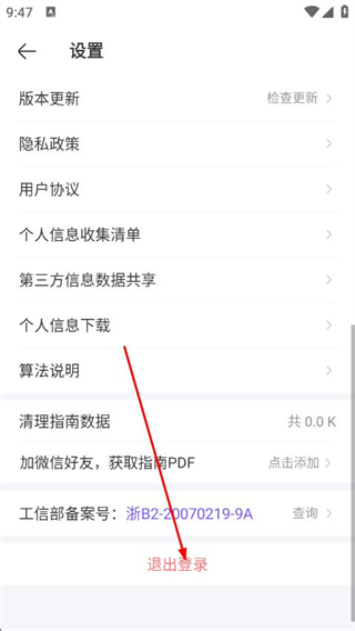 3、在设置页面点击退出登录,即可完成退出登录操作。